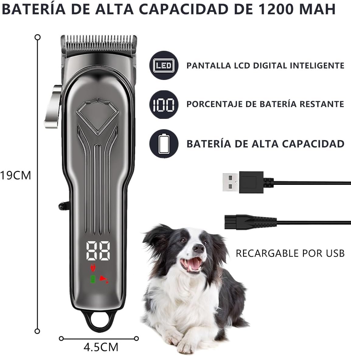 🔹 Características: bajo ruido, recargable, seguro, corte rápido