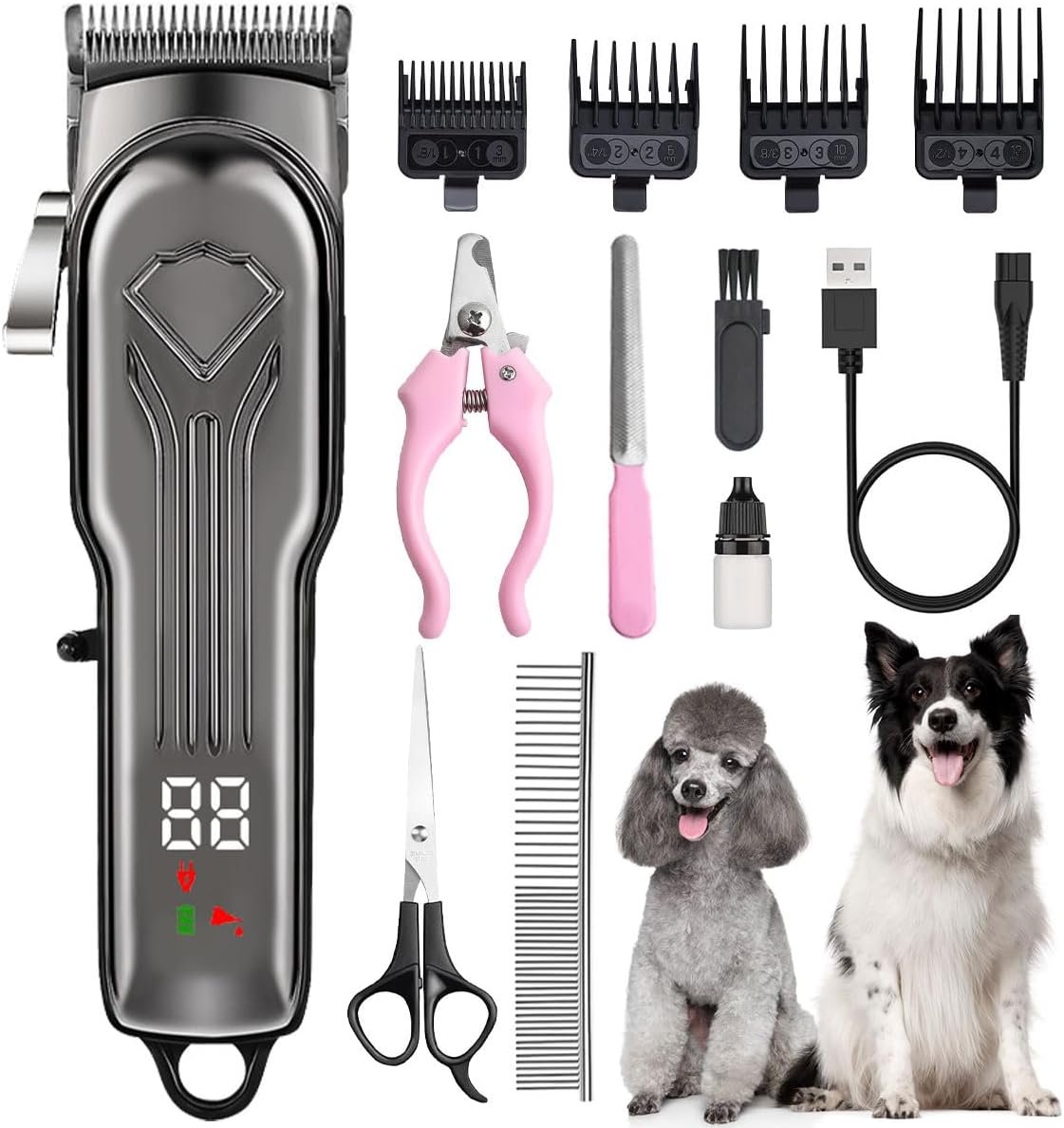 Este kit incluye múltiples peines guía ajustables, tijeras, peine, cortaúñas y accesorios de limpieza, lo que permite realizar cortes completos o retoques en zonas específicas como cabeza, cuerpo, orejas y patas. Su batería recargable de larga duración ofrece hasta 120 minutos de uso continuo, brindando libertad de movimiento y comodidad.
