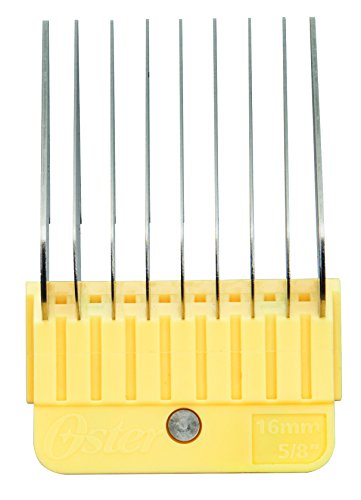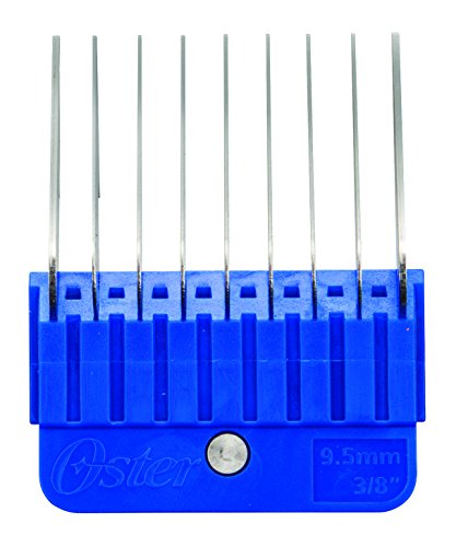 El kit de 10 piezas de acero inoxidable Oster incluye una amplia variedad de peines codificados por colores almacenados en un práctico estuche. Estos peines de corte están diseñados para adaptarse a cuchillas desmontables estándar A5 y vienen en tamaños que se adaptan a las necesidades de aseo más comunes. Desde 1/16 pulgadas para cortes cercanos a 5 cm para una longitud más larga y natural en abrigos esponjosos, estos peines guía de acero inoxidable ofrecen versatilidad para los dueños de mascotas y peluqueros.