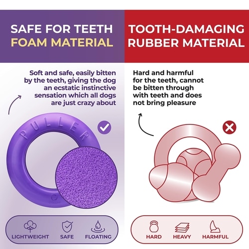 Multifunctional Dog Toy – PULLER is more than just a dog ring toy. Use it to fetch, tug of war and water games. It is a great alternative to dog balls, floating dog toys, frisbee for dogs.